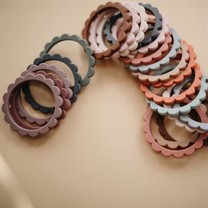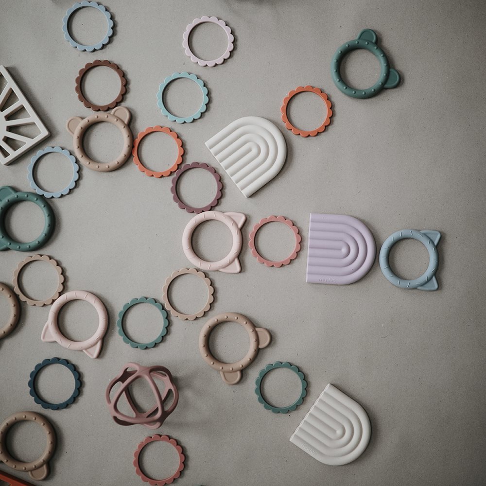 Mix a bracelet teethers with a clever finger toothbrush from Mushie. Find Mushie finger toothbrush here