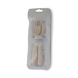 Introduce your baby to solid food with Mushie’s plastic fork and spoon set!