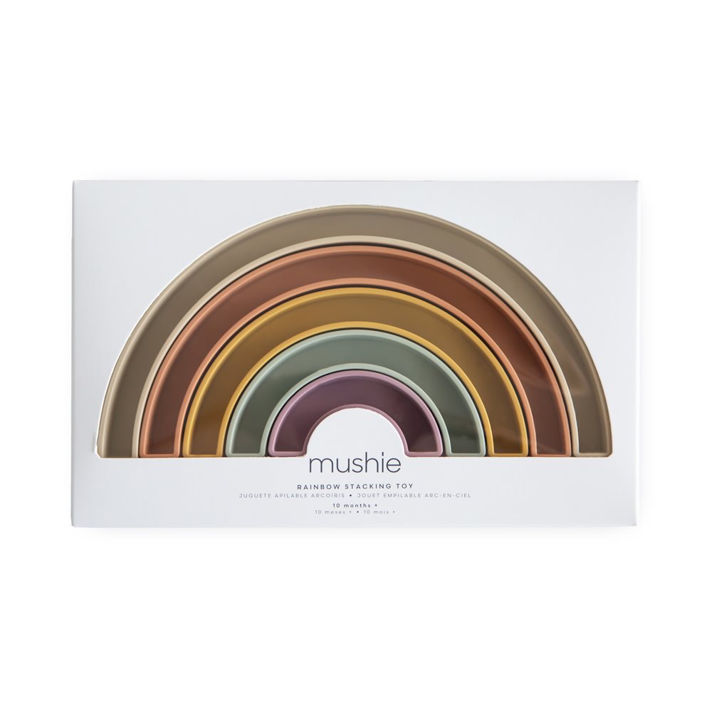 A beautiful and playful Rainbow Stacker in various colors from Mushie!