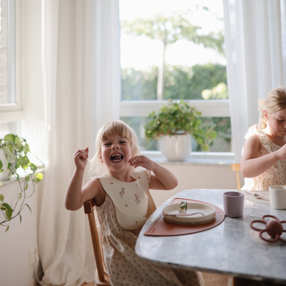 A silicone bib will keep your little one and the surrounding area clean: The deep pocket will catch the food and prevent it from creating a mess on the floor and on baby’s clothes. The rounded, built-in neck fasteners ensure a comfortable fit.
