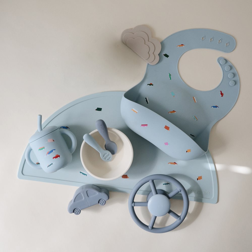 Keep your little one and the surrounding areas clean with the cute and colorful place mats from Mushie. Combine the place mat with dinnerware products in matching colors to get an elegant look during mealtime.