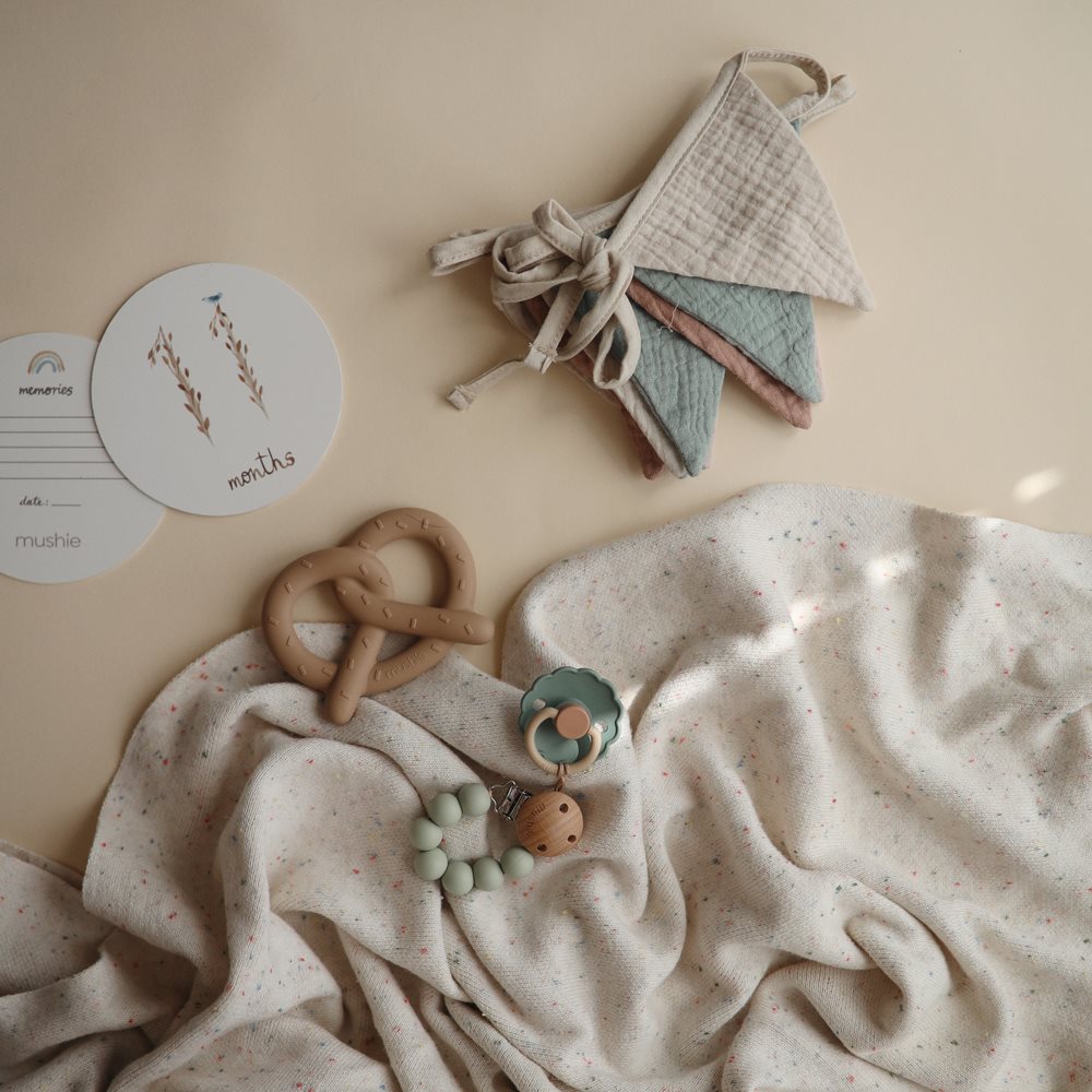 Mix a teether with a clever finger toothbrush from Mushie. Find Mushie finger toothbrush here