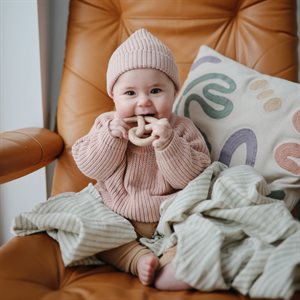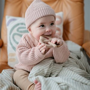 With a teether you can help soothe your baby’s irritated gums when teeth are starting to come out. The line of teethers is made from food-grade silicone, and they are designed to be easy to grasp by tiny baby hands.